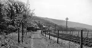![]() The site of the station, looking southwest towards Tondu in 1962 | |