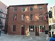 The Blackstone Block Historic District encompasses what was once a waterfront business area in Boston, Massachusetts. Due to the infill of land it is now slightly inland from the waterfront. The district is bounded by Union, Hanover, Blackstone, and North Streets, not far from Quincy Market and Faneuil Hall. It includes the Union Oyster House, a National Historic Landmark building erected in the 1710s, and a collection of commercial buildings dating from the late 18th and 19th centuries. The district was added to the National Register of Historic Places in 1973.[1] It also includes the c. 1770s Ebenezer Hancock House (10 Marshall Street), a Federal-style wood-frame house that is the only building left in the city which was known to be owned by John Hancock.[2] The building was designated a Boston Landmark by the Boston Landmarks Commission in 1978 for its notable exterior and interiors. In 1983, the surrounding ca. 1676 Blackstone Block Street Network was also designated by the Boston Landmarks Commission.