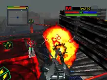 Before the main missions, players are introduced to a tutorial area by Dr. Franz Grubert to get familiarized with the controls and beneficial items that can be picked up along the way.[2] After the tutorial is completed, players are tasked with various objectives to clear before proceeding such as capturing a designated criminal.[2] If the players does not recover health, their player character will burst in flames and crash into the ground by enemy fire and once all lives are lost, the game is over, though players have the option of resuming progress by loading their saved game into the last mission reached.[2]
