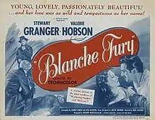 Blanche Fury is a 1948 British Technicolor drama film directed by Marc Allégret and starring Valerie Hobson, Stewart Granger and Michael Gough. It was adapted from a 1939 novel of the same title by Joseph Shearing. In Victorian era England, two schemers will stop at nothing to acquire the Fury estate, even murder.