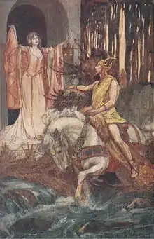 Blodeuwedd (Welsh pronunciation: [blɔˈdɛɨwɛð]; Welsh "Flower-Faced", a composite name from blodau "flowers" + gwedd "face"),[1] is the wife of Lleu Llaw Gyffes in Welsh mythology. She was made from the flowers of broom, meadowsweet and oak by the magicians Math and Gwydion, and is a central figure in Math fab Mathonwy, the last of the Four Branches of the Mabinogi.