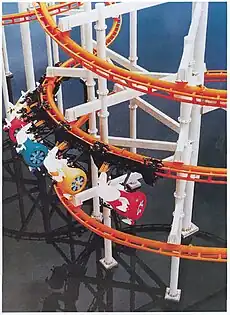 In 1979, Bobbejaanland opened the Looping Star roller coaster (Schwarzkopf GmbH). Although the ride had a security bar placed over the hip, it was more the centrifugal force which held the passengers in the vehicle when it looped the loop.[5][6] The coaster was dismantled in 2003.