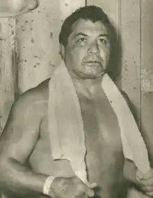 Roberto Aceves was born in Morelia, Michoacán, Mexico but at the age of 8 his family moved to Mexico City. By the age of 14 Aceves began training to become a professional wrestler and made his debut in 1934. Adopting the ring name Bobby Bonales he began working for promoter Salvador Lutteroth and his newly founded Empresa Mexicana de Lucha Libre (EMLL) during the early days of Lucha libre in Mexico. On September 27, 1936, Bonales lost to Chong Yip on the undercard of the EMLL 3rd Anniversary Show.[3][4] During the following years Bonales worked his way up the ranks and on May 5, 1940, he defeated Jack O'Brien to win the Mexican National Lightweight Championship.[5] He later lost the championship to Dientes Hernandez.[5] On April 6, 1941, Lobo Negro defeated Bonales in a match for the vacant Mexican National Welterweight Championship.[6] Bonales became one of the first wrestlers to train under Diablo Velasco,[2] during which time he developed a new move called a Topé Suicida, a move where he would dive through the ring ropes out of the ring, striking his opponent with a headbutt. The Topé Suicida became one of the signature moves of the Lucha Libre style, emphasizing the high flying style.[1] Bonales wrestled on the first show of the newly built Arena Coliseo when it opened on April 2, 1943.[7] Later that same year Bonales began a high-profile storyline feud with El Santo, who at the time was an emerging performer in Mexico. On June 11, 1943, Bobby Bonales defeated El Santo to win the Mexican National Middleweight Championship as part of that storyline.[8] The two met in the main event of the EMLL 10th Anniversary Show where El Santo defeated Bonales in one of the earliest Luchas de Apuestas, or "bet match", after which he was shaved bald.[3][9] Later on El Santo would regain the Middleweight championship, but Bonales became a two-time champion on June 1, 1945, when he defeated El Santo for the title once again.[8] His second run with the Middleweight Championship ended at the EMLL 12th Anniversary Show when Gory Guerrero defeated Bonales[3][4][8] Three years later Bonales and Guerrero fought each other at both of the EMLL 15th Anniversary Shows, splitting the matches between the two.[4] The following year at the EMLL 16th Anniversary Show Bonales teamed up with Tarzán López to defeat El Santo and Gory Guerrero in the main event of the show. On July 11, 1952, defeated Gory Guerrero to win the NWA World Welterweight Championship only to lose it to El Santo two months later.[3][4][10]