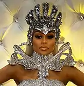 The music video for "Body" was directed by Colin Tilley and features choreography from both Megan Thee Stallion and choreographer JaQuel Knight.[29] It was released alongside both the song and album on November 20, 2020.[2] Megan Thee Stallion engaged in a livestream premiere for the song's music video as part of the YouTube Originals' Released series.[16] At the premiere, she told fans, "You're going to see all body shapes, a lot of strong women doing the damn thing. Just being confident and owning their bodies and their sexuality".[7] Celebrities who make cameo appearances in the music video for "Body" include Taraji P. Henson, Blac Chyna, Jordyn Woods, Maliibu Miitch, Asian Da Brat, and Tabria Majors.[11][30] Throughout the video, the women "confidently groove on a futuristic set and on a spotlit stage".[1] Various fashion publications praised the outfits worn in the video.[11][16][31] Megan Thee Stallion initially wears a black, mesh body suit which emphasizes her curves, as well as "an oversized coat with a bedazzled bodice with nothing underneath".[16][31]