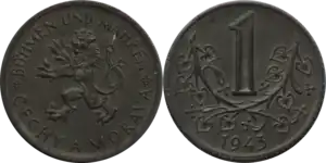 - ↑ "1 Koruna - Bohemia and Moravia - Numista". Numista. Retrieved 17 January 2013.