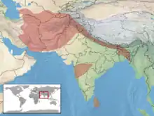 It is distributed throughout Sri Lanka, India, Pakistan, Nepal, Bangladesh, Afghanistan (Leviton 1959: 461), southern Turkmenistan, southern Uzbekistan, southeastern Tajikistan, and Iran.