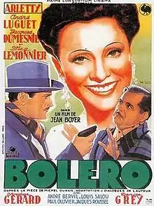 Bolero (French: Boléro) is a 1942 French comedy film directed by Jean Boyer and starring Arletty, André Luguet and Jacques Dumesnil.[1] It takes its name from the Bolero, a Latin American dance and the composer Maurice Ravel's piece of music inspired by the style of it.
