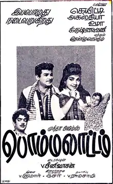 Bommalattam (transl.Puppet Show) is 1968 Indian Tamil-language comedy film, directed by Muktha Srinivasan and produced by V. Ramaswamy. The screenplay was written by Cho Ramaswamy from a story by Madurai Thirumaran. It stars Jaishankar, Jayalalithaa, Nagesh, Major Sundarrajan, Cho Ramaswamy and Manorama. V. S. Raghavan, Sachu and O. A. K. Thevar play key roles. The film was released on 31 May 1968.[2]