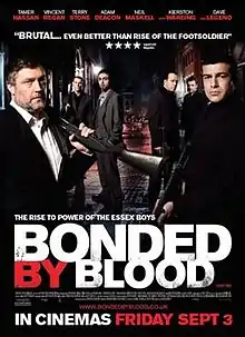 Bonded by Blood is a 2010 crime film directed by Sacha Bennett and starring Tamer Hassan, Vincent Regan, and Adam Deacon.[1] It is loosely based on the Rettendon murders in 1995.