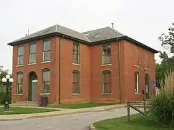 Booker T. Washington School is a historic school building located at Rushville, Rush County, Indiana. It was built in 1905, and is a two-story, "T"-plan, vernacular brick building with Romanesque Revival style design elements. It has a low-pitched hipped roof and features round and segmental arched openings. The building served as the focal point for the African-American community of Rushville.[2]:2–3It is currently being used as a neighborhood community center and is home of the local Head Start program.