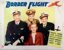 Border Flight is a 1936 American aviation drama film directed by Otho Lovering and written by Stuart Anthony, Arthur J. Beckhard and Ewing Scott. The film stars Frances Farmer, John Howard, Roscoe Karns, Robert Cummings, Grant Withers and Samuel S. Hinds. Border flight was based on the exploits of the US Coast Guard pilots, based in San Diego. In Aviation in the Cinema (1985), aviation film historian Stephen Pendo considered Border Flight, a drama that "detailed the aerial activities of the United States Coast Guard fighting a gang of smugglers."[1]