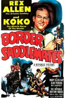 Border Saddlemates is a 1952 American Western film directed by William Witney and written by Albert DeMond. The film stars Rex Allen, Mary Ellen Kay, Slim Pickens, Roy Barcroft, Forrest Taylor and Jimmy Moss. The film was released on April 15, 1952, by Republic Pictures.[1][2][3]