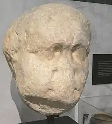 The Bosham Head is part of the largest Roman statue found in Britain, a large, 375-pound (170 kg) sculpted piece of stone that was discovered in Bosham, near Chichester, around 1800. It later resided for some time in the garden of the Bishop of Chichester's palace before being exhibited in the Chichester Museum where it now stands.