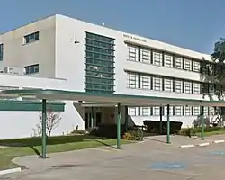 The present Bossier High School, a three-story building located at 777 Bearcat Drive, was built in 1938–39. It was listed on the National Register of Historic Places in 2004.[2] It was designed by architect Samuel Wiener in International Style. Due to rapid population growth, the city's Bossier High School (Colquitt Street) built in 1923 and 1928 became over-crowded, and this school was built to replace it. The former school was then devoted to serving elementary school levels. It was built by contractor James T. Taylor of Fort Worth, Texas. The listing included three contributing buildings.[5]