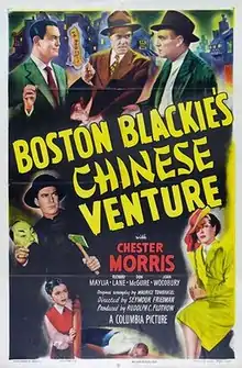 Boston Blackie's Chinese Venture is a 1949 mystery film directed by Seymour Friedman, starring Chester Morris. This was the last of Columbia's 14 Boston Blackie pictures (1941–49). Richard Lane, as long-suffering Inspector Farraday, was the only other character who appeared in all of the Boston Blackie films. George E. Stone, playing Blackie's sidekick The Runt, missed the first and the last films in the series due to illness. In Chinese Venture Stone was replaced by Sid Tomack as "Shorty."
