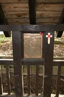 The wooden Lych-gate, which now forms the main entrance to the church from Boulton Lane was constructed just after the first World War as a memorial to the local servicemen of Great War. The structure was built by Joseph Thomas Fisher, a local carpenter and joiner who also served in the Great War.[7]