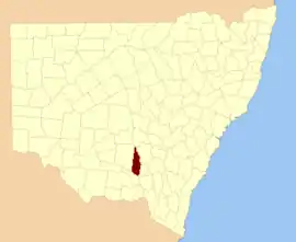 Bourke County is one of the 141 Cadastral divisions of New South Wales. It contains the entirety of the Coolamon Shire, including the towns of Coolamon, Ganmain and Ardlethan; as well as parts of Bland, Narrandera and Temora Shires and part of the City of Wagga Wagga. The Murrumbidgee River is the southern boundary.