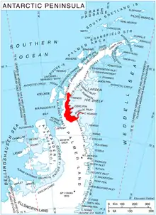 Location of Bowman Coast on the Antarctic Peninsula