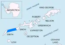 Boyd Strait is the 40-kilometre (25 mi) wide strait lying between Snow Island and Smith Island in the South Shetland Islands, Antarctica, and linking Drake Passage and the Bransfield Strait.