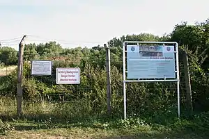 The Brücke von Andau (Hungarian: Mosontarcsai híd or Andaui híd) is a small bridge over the Einserkanal / Hanság-főcsatorna, a small artificial river which forms part of the border between Austria and Hungary. It is located near to the village of Andau (Burgenland, Austria).
