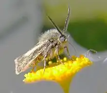 The wingspan is about 24 mm. The forewings are yellowish brown and the hindwings are white.[2]