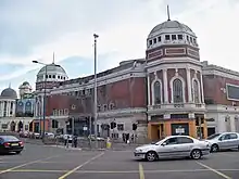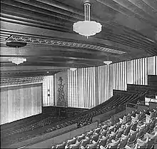 The cinema, originally built as a 3,318 seat cine-variety theatre, was the largest outside London, and the third largest in England.[1] It was completed in 1930 as the New Victoria.[2] It is on the site of William Whittaker's brewery and malting, which had closed in 1928. It is a Renaissance Revival building designed by the architect William Illingworth, with copper-covered cupolas on two corners complementing those on the neighbouring Bradford Alhambra theatre. The New Victoria combined a 3,318-seat auditorium, 450 square feet (42 m2) ballroom and 200-seat restaurant. The auditorium was primarily a cinema, but also a concert and ballet venue with a stage, orchestra pit, Wurlitzer organ and excellent acoustics.[3]