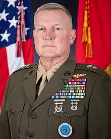 Bradley S. James is a United States Marine Corps major general who most recently served as the Commander of United States Marine Corps Forces, Korea from May 30, 2019 to June 27, 2022. Previously, he served as the Commanding General of the 4th Marine Aircraft Wing until April 13, 2019.[1][2][3][4][5] Bradley assumed command of the 4th MAW from Major General William T. Collins on April 29, 2016.[6] He also served as acting commander of Marine Forces Reserve from November 2018 to May 2019.[7]