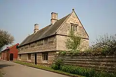 A notable building is Brandon Old Hall, built in the 16th century. Built of coursed dark gold bands of ironstone, light gold bands of ironstone, narrow bands of blue lias with limestone ashlar dressings.[3] The garden is walled in the same unique style.[4]