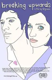 Breaking Upwards is a 2009 American romantic comedy-drama film directed by Daryl Wein,[2] starring Zoe Lister-Jones, Wein, Julie White, Peter Friedman, Andrea Martin, and Pablo Schreiber. It explores a 20-something, real-life New York couple battling codependency who intricately strategize their own break-up. Cited as an example of independent film industry sweat equity, the film was shot in Manhattan and Brooklyn on a $15,000 budget.[3] It premiered at the SXSW Film Festival on March 14, 2009,[4] and was released simultaneously at New York City's IFC Center and via video on demand on April 2, 2010.[5]