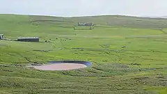 A reservoir which allows particles to precipitate out of water draining the Brindister Quarry