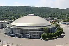 Brno Exhibition Center (Czech: Brněnské výstaviště) is a convention centre based in Brno, Czech Republic. It was established in 1928.[1] The centre occupies a site on 667,000 square metres (7,180,000 sq ft) and provides a total net exhibition area of 125,496 square metres (1,350,830 sq ft)[2] including open-air space and exhibition halls with an exhibition area of 61,479 square metres (661,750 sq ft).[3] The centre has 15 exhibition halls with a visitor capacity of 25,000–30,000 (maximum 60,000) a day. The number of visitors per year grew to 780,000 in 2017.[4]