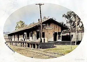 Led by John Hale, four forward thinking business leaders (John Parsons, Christopher Keathly, John Hale, and W.S. Hancock) in the tiny town of Brooksville were eager to bring the railroad to their area. They formed the Brooksville Railroad Association and The Brooksville Telegraph Company and paid $20,000 to The Florida Southern Railroad to lay track twelve miles from the main line at Pemberton Ferry (Croom), to Brooksville.[5] Bonds were sold and the Train Depot built in 1885.[6] The building still stands today. W.S. Hancock and Frank Saxon became officers of the telegraph company.