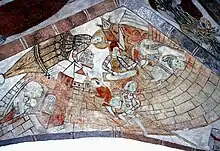The church is noted for its medieval murals from the second half of the 15th century. Some fragments of those added around 1450 can be seen on the walls of the nave, but in 1480, Barbara Brahe had vaults constructed and decorated with murals. It is thought these rich decorations might have been painted by artists from the Helsingborg Workshop, who also painted the murals in St Mary's Church (Sankta Maria kyrka)in Helsingborg.[1] As the church was consecrated to Saint Andrew, his image appears in a number of the paintings.[2]