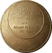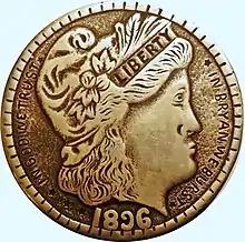 Bryan Money is a term used by numismatists to refer to tokens and medals associated with William Jennings Bryan's platform during the United States presidential elections of 1896 and 1900.[1] Bryan's platform advocated for the reinstatement of silver currency in the United States economy as part of the short-lived Silver Republican Party.