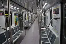 The cars are designed to work with Communication Based Train Control (CBTC) to ensure a better frequency on the lines.[6] They come installed with security cameras, audio warnings for approaching stations and are accessible to the disabled.[7]