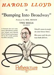 Bumping Into Broadway is a 1919 American short comedy film featuring Harold Lloyd. A print of the film survives in the film archive of the UCLA Film and Television Archive.[3] This film is notable as Lloyd's first two-reeler featuring his "glasses" character.[4][5]