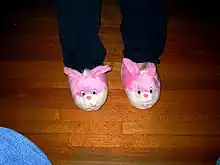 Bunny slippers are a type of slipper in the shape of a cartoon rabbit. Advertisements date back as far as 1920.[1]