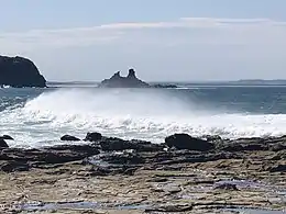 The principal features of the park are the striking rock formations including the large rock structure called Eagles Nest, located adjacent to the coastline at the eastern end of the marine national park. Eagles Nest also resembles the top half of a map of Australia.[5][6] Other attractions include Flat Rocks where there are large rockpools for rockpool rambling and direct access from Cape Paterson-Inverloch Road. The Bunurong Marine National Park is accessed at many different points along this coast, a popular one being near Cape Paterson caravan park on Surf Beach Road as it has a modified rockpool for swimming.[7] Direct and more difficult access to the marine national park is via car parks off Cape Paterson-Inverloch Road. Exploring, snorkelling[8] and scuba diving are popular. There are boat launching facilities at Inverloch on Anderson Inlet.[2]