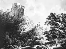 Brush drawing of the castle ruins by August Seyffer from the year 1813/14