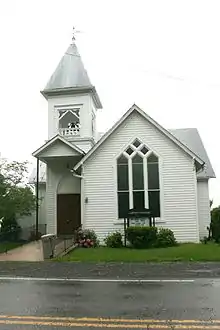 - Union Church (c. 1892) The original church in Burlington was a log structure erected near the village cemetery between 1808 and 1818 and used by the Patterson Creek Baptist Church. This building was replaced with the "Free Church" in 1854 which was used by several congregations, including the Methodist Episcopal Church and the Presbyterian Church. These two congregations erected a new church in 1892 on Burlington's Main Street which is called the Union Church. It is of frame construction and is built in Gothic Revival style.