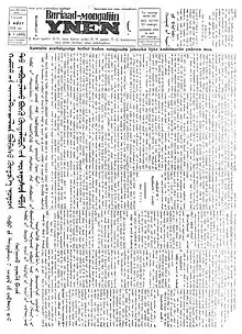 From 1931 to 1938, the newspaper Buryad-Mongolian Unen was printed in Latin alphabet.[2] For the first time, the Latin alphabet clearly showed the Buryat dialectal differences, but the Buryat language, written in Latin, still continued to maintain its Mongolian basis of the language: vocabulary, grammatical rules, style, etc.