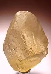 ![]() A somewhat rounded, alluvial crystal of bytownite from the Dorado Mine, Casas Grandes, Chihuahua, Mexico (size 3.7 × 2 × 1.3 cm) | |