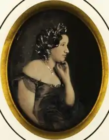 In 1854, she married Lionel de Moreton, count of Chabrillan. He was named consul for France in Melbourne, Australia, and died there in 1858.[3][5] In 1854, she published a memoir Adieu au monde, Mémoires de Céleste Mogador. Her attorney Desmarest convinced her to pen the story of how she worked her way out of poverty to rise to the top of the demi-monde. This memoir caused scandal in both Europe and Australia, where the courtesan-turned-countess had just relocated with her new husband. Although ostracized by her new community, she used the two years to work on her writing and to pen notes about her new life in a journal. In 1877, she published it as Un deuil au bout du monde and it describes her experiences in Australia.[6] She was disappointed that she could not find a publisher for Les Deux Noms, her third set of memoirs. Although lost for many years, Jana Verhoeven found them in France—and with the help of Alan Willey and Jeanne Allen, translated and annotated them.[7]