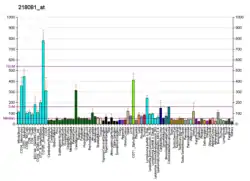 Protein C20orf27 is expressed ubiquitously throughout different human tissues. Microarray-assessed tissue expression pattern suggests caudate nucleus has the highest expression of protein C20orf27.[27]