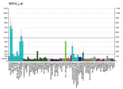 - ↑ NCBI (National Center for Biotechnology Information) GEO Profile entry on C20orf27 gene https://www.ncbi.nlm.nih.gov/geo/tools/profileGraph.cgi?ID=GDS596:50314_i_at. Retrieved on 2020-8-01.