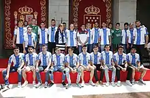 In the 2015–16 season, for the first time in their history, Leganés earned promotion to La Liga, which was sealed on 4 June 2016 with a 1–0 away win against CD Mirandés,[6] thus becoming the fifth team from Community of Madrid to ever play in La Liga after Real Madrid, Atlético Madrid, Rayo Vallecano, and Getafe. They remained in the top flight for four seasons, reaching a peak of 13th in 2018–19, before relegation in the last game of the following season, a 2–2 home draw with Real Madrid.[7] During this spell, the team qualified for the first time to the semifinals of the Copa del Rey, by eliminating Real Madrid in the quarterfinals thanks to a 2–1 win at Santiago Bernabéu Stadium.[8]
