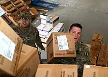 ![]() The NH National Guard loading boxes of personal protective equipment in Concord | |