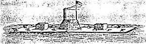 New Orleans was commissioned on October 14, 1861, commanded by Lieutenant Samuel W. Averett.[12] First Lieutenant John J. Guthrie commanded Red Rover.[11] On November 20, New Orleans was sent up the Mississippi River from New Orleans, towed by CSS Ivy. Red Rover left New Orleans five days later, and later met Ivy at Columbia, Arkansas, where it took over the process of towing New Orleans. The floating battery reached Columbus on December 11.[13] The total crew of the floating battery numbered nine officers and about 25 enlisted men at the time that it left New Orleans.[14] At this time, it was armed with six 8-inch columbiads;[10] this differed from the designed armament of 20 guns.[11] On January 7, 1862, New Orleans prepared for action upon the approach of Union Navy warships, but the Union vessels withdrew after sighting the floating battery.[15] Four days later, Red Rover towed New Orleans to accompany three other Confederate vessels in an operation that became the Battle of Lucas Bend. Red Rover came under Union fire, and returned to Columbus, still towing New Orleans.[16]