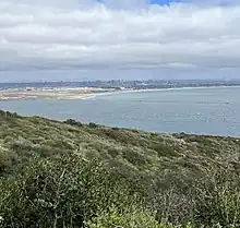 The park offers a view of San Diego's harbor and skyline, as well as Coronado and Naval Air Station North Island. On clear days, a wide expanse of the Pacific Ocean, Tijuana, and Mexico's Coronado Islands are also visible. A visitor center screens a film about Cabrillo's voyage and has exhibits about the expedition.