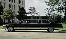 In 1993, after president Bill Clinton took office, a then brand-new 1993 Fleetwood would become his state car that he would use throughout his term until 2001, and only the second Cadillac since Ronald Reagan's 1983 Fleetwood. This would also prove to be the last presidential car based on a regular production passenger car, as in 2001, the de Ville was not regarded as suitable for conversion, so its successors have instead been built on the GM's SUV chassis. After Clinton left office, the car eventually was displayed at the Clinton Presidential Center in Little Rock, Arkansas, with its doors closed to the public per the Secret Service regulations, to prevent third parties from learning about the car's protection and security features.[16] The car also featured communication devices such as phones, satellite communications and even the Internet.[17]